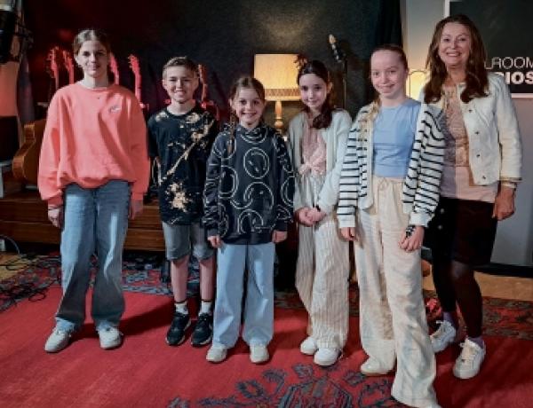Po nahrawanju zestupachu so Marija Nukec, Aleksander Bjarš, Johanna Hermanec, Lubina Nukec, Josefina Špitankec a Marhata Cyžec-Korjeńkowa (wot lěwa na prawo) za skupinske foto.  Foto: Luisa Hermanec. Po nahrawanju zestupachu so Marija Nukec, Aleksander Bjarš, Johanna Hermanec, Lubina Nukec, Josefina Špitankec a Marhata Cyžec-Korjeńkowa (wot lěwa na prawo) za skupinske foto.  Foto: Luisa Hermanec.